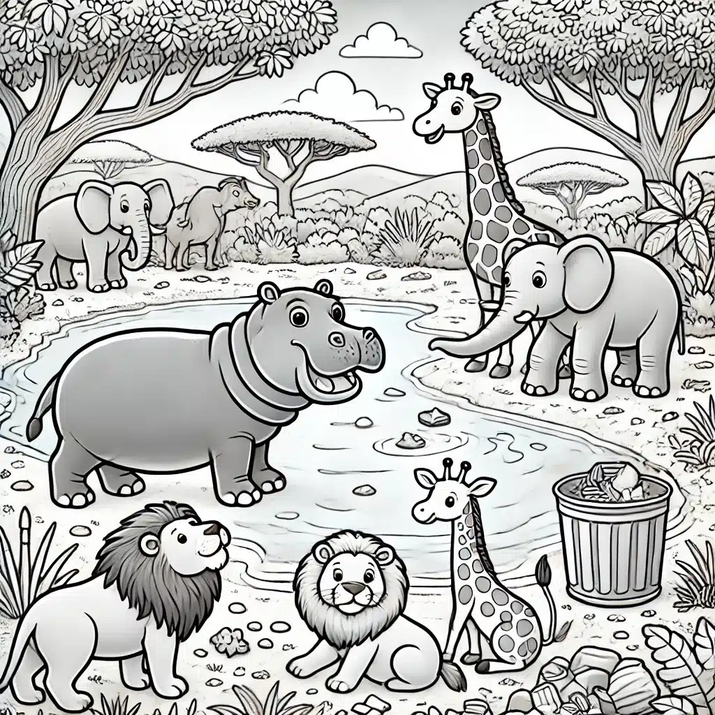 dibujo animales para colorear hipopotamo