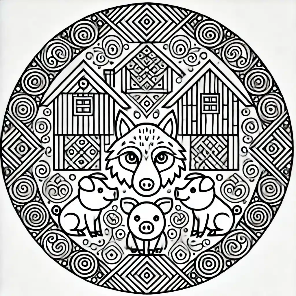 dibujo cuento los tres cerditos para pintar