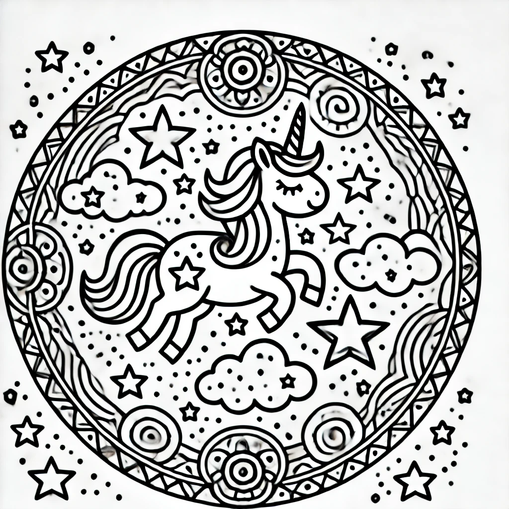 mandala unicornio - dibujo para colorear