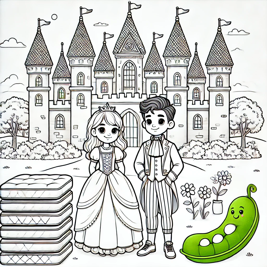 Dibujo para pintar de La princesa y el guisante