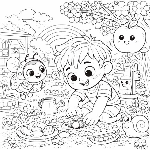 Pablo hizo un hoyito en la tierra con el dedo, con muchísimo cuidado, como si preparara una camita para algo importante. Puso la semilla, la tapó suave y le dio unas palmaditas.